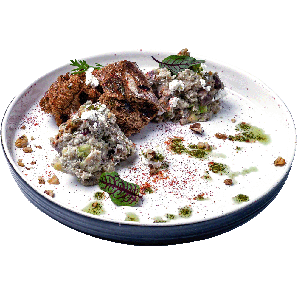 • Veal and baked eggplant tartare