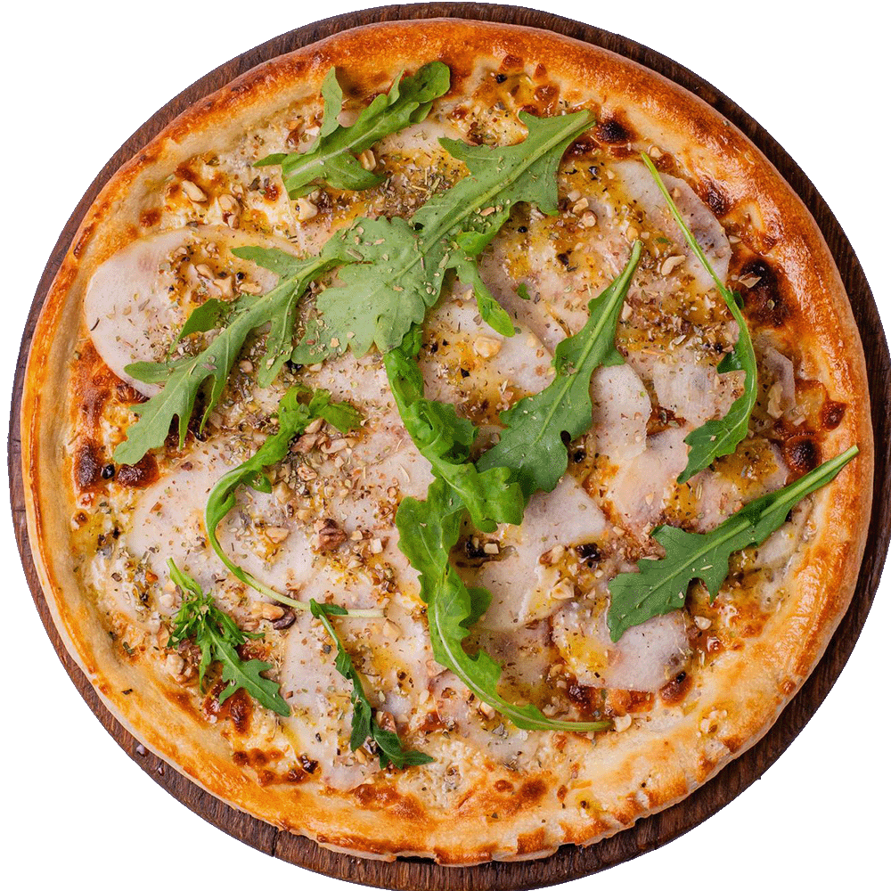 Моцарела, вершковий соус, груша горгонзола, горішки, трюфельний мед, рукола, бекон
