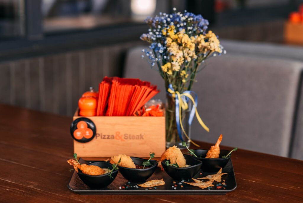 Pizza & Steak – це місце, де затишок та комфорт буквально огортає вас. Сюди можна прийти з дітьми, адже ми маємо смачне та дуже яскраве дитяче меню, яке точно оцінять маленькі гурмани! Інтер’єр ресторану зручний і красивий, що робить відвідування ще приємнішим.